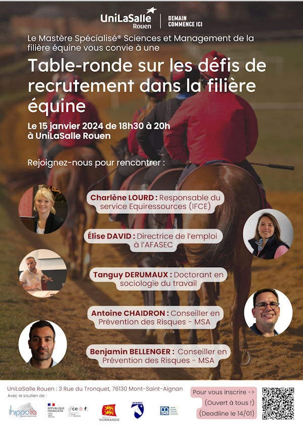 La thématique abordée concerne les défis de recrutement dans la filière équine et différents acteurs du recrutement seront présents :